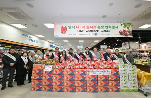 [파이낸셜경제=김예빈 기자] 김광열 영덕군수와 직원들이 지역의 주요 인사들과 함께 지난 6일부터 8일까지 서울 강동농협 하나로마트 로데오점에서 영덕사과 홍보·판촉 행사를 펼쳤다.