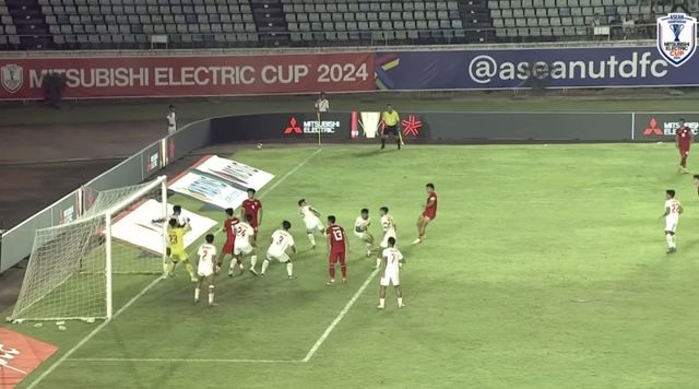 인도네시아(빨강 유니폼)와 미얀마의 미쓰비시컵 조별리그 B조 1차전 경기 장면. 사진=아세안 유나이티드 FC 유튜브 캡처