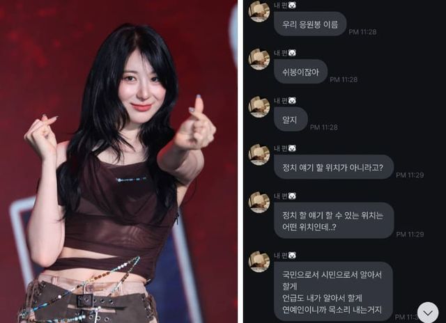 이채연은 지난 7일 팬 소통 플랫폼에 "정치 얘기할 위치 아니라고? 정치 얘기할 수 있는 위치는 어떤 위치인데?"라는 글을 남겼습니다.
