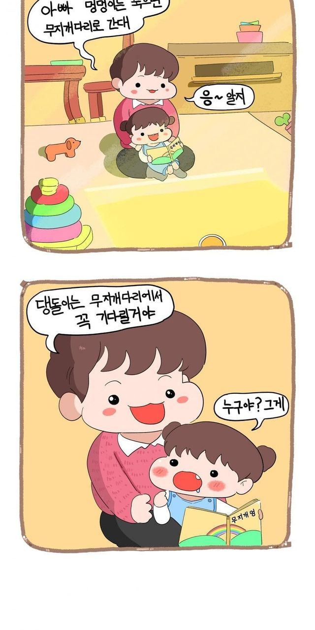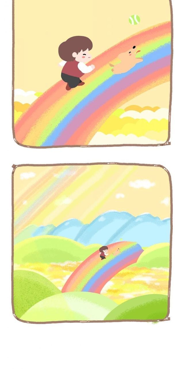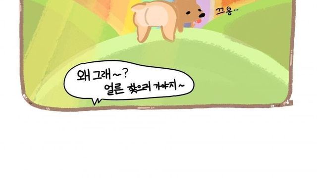 강아지 무지개 다리 건너는 만화.