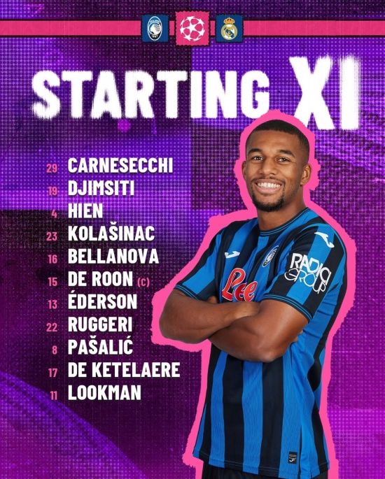 홈 팀 아탈란타는 3-4-1-2 전형으로 나섰다. 마르코 카르네세치 골키퍼를 비롯해 세아드 콜라시나츠, 이삭 히엔, 베라트 짐시티가 백3를 구축했다. 중원은 에데르송, 마르텐 더룬, 윙백은 마테오 루게리, 라오울 벨라노바가 맡았다. 2선 공격은 마리오 파샬리치가 나섰고 최전방에 아데몰라 루크먼, 샤를 데 켈레라에레가 출격했다.