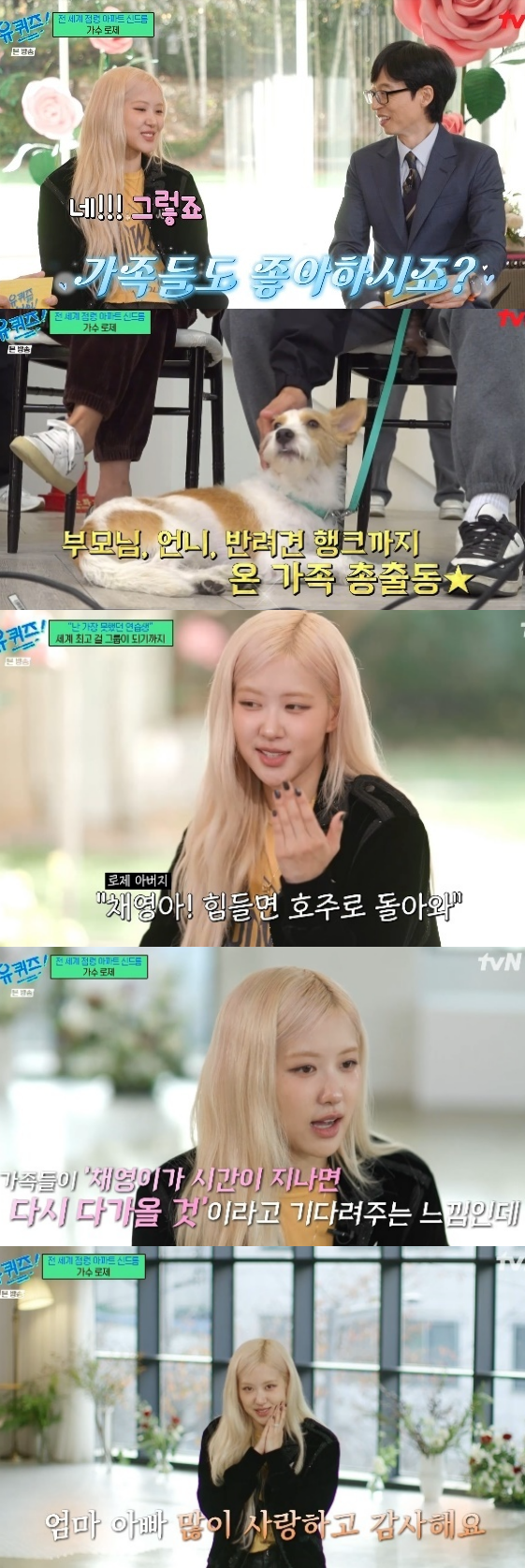 로제는 이날 방송에서 부모님과 멤버들에 대한 깊은 애정을 고백했다.