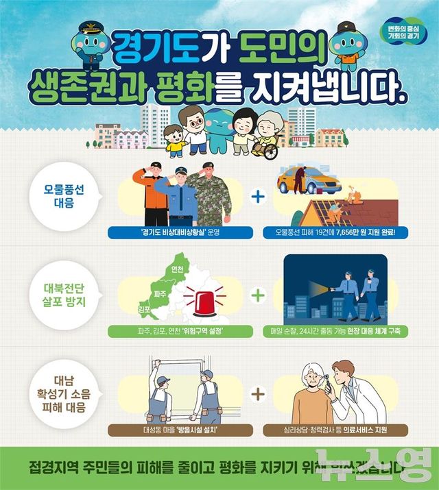 경기도는 도민의 안전을 최우선으로 이같은 상황을 수습하고 도민의 생존권과 평화를 지켜내기 위한 각종 지원책을 마련했다.
