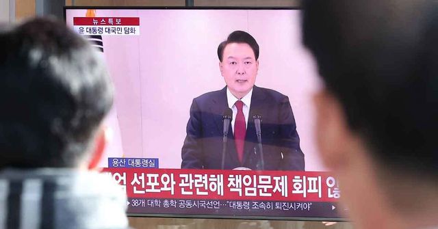 윤석열 대통령에 대한 국회의 탄핵소추안 발의일인 12일 서울 중구 서울역 대합실에서 시민들이 윤석열 대통령의 4번째 대국민 담화를 시청하고 있다. / 뉴스1