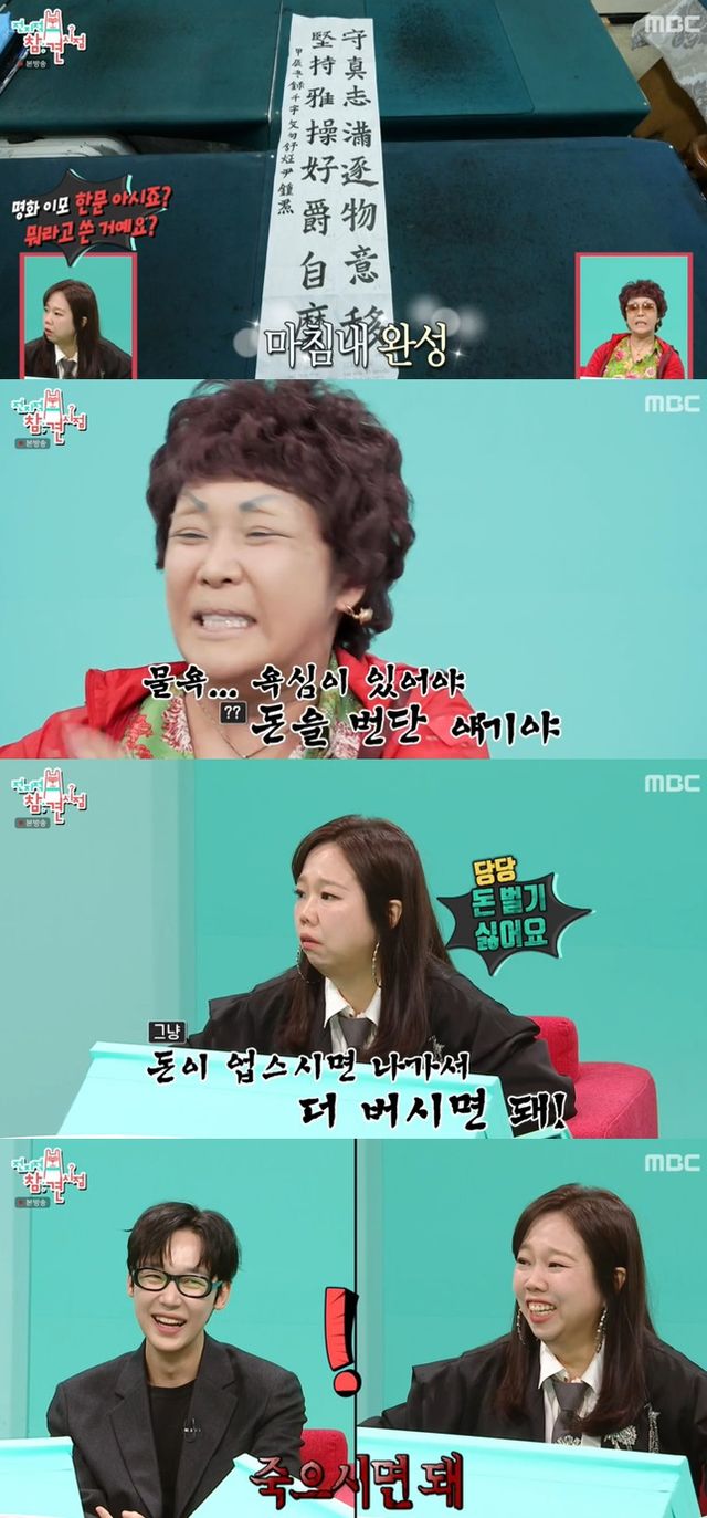 랄랄은 "욕심이 있어야 돈을 번단 얘기다"고 실제 한자의 의미와는 다른 해석을 내놓더니 "돈이 없으면 나가서 더 버시라"고 덧붙였다.