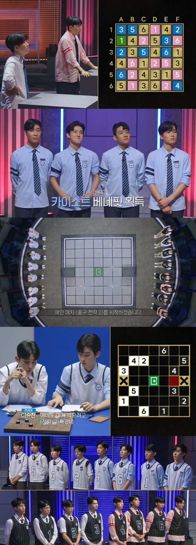 지난 13일 공개된 6회에서는 ‘서울대-연세대-카이스트-포항공대’ 네 대학 간의 불꽃 튀는 첫 연합 대결이 펼쳐져 시청자들의 이목을 집중시켰다. 베네핏 매치 ‘블라인드 스도쿠’에 이어 시즌 2 최초로 연합전으로 진행된 메인 매치 ‘출구 전략2’에서 ‘연세대-카이스트’ 팀과 ‘서울대-포항공대’ 팀이 결성, 저마다의 강력한 전략을 선보이며 첫 연합전의 결과에 대한 강렬한 궁금증을 남겼다.