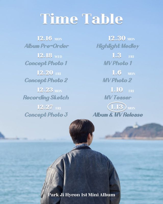 공개된 타임 테이블에 따르면 박지현은 앨범 발매 전까지 오는 16일 앨범 사전 예약 판매가 시작된다. 이와 함께 콘셉트 포토, 녹음 스케치, 하이라이트 메들리, 뮤직비디오 사진과 티저 등 콘텐츠가 공개될 예정이다.