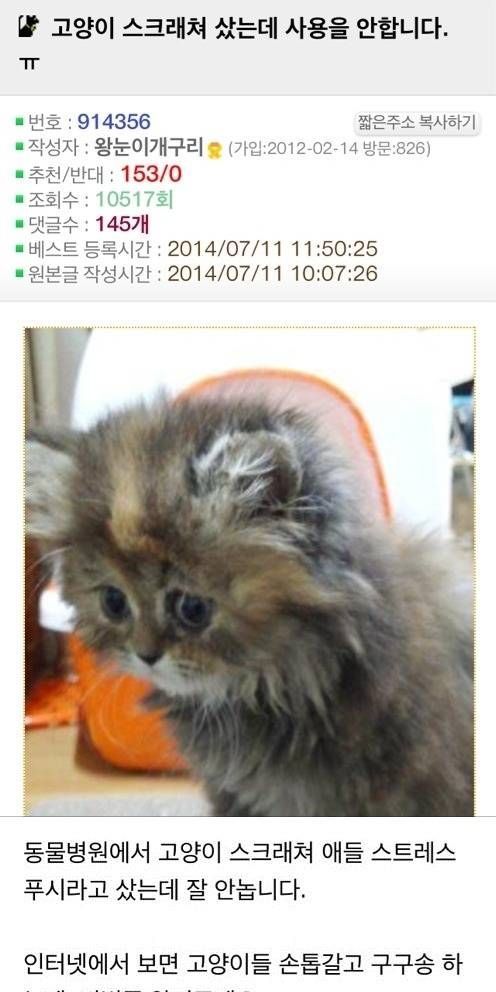 고양이 스크래쳐 샀는데 사용을 안합니다,,