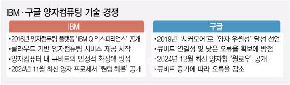 현재 IBM과 구글은 2030년을 양자컴퓨터 상용화의 원년으로 목표로 삼고 경쟁을 이어가고 있다. 전문가들은 IBM이 큐비트의 안정적 확장에 집중하고, 구글은 큐비트 연결성과 낮은 오류율 확보에 중점을 두고 각각 발전을 이루고 있다고 평가한다. 최근 두 기업은 상용화를 가로막던 난제를 해결한 양자칩을 연이어 공개하며 더 격렬히 경쟁하고 있다.