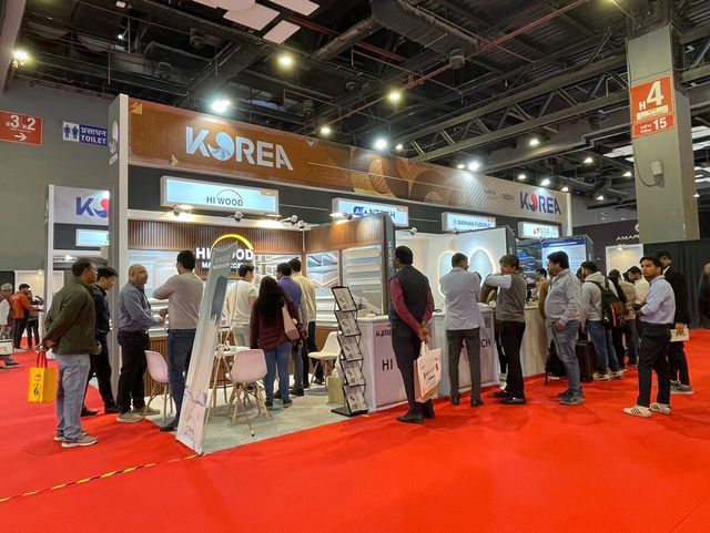 (서울=연합뉴스) 대한무역투자진흥공사가 지난 12일(현지시간)부터 15일까지 인도 뉴델리에서 열린 '2024 인도 델리 건축 전시회'에서 한국관을 운영, 약 960만달러의 상담 성과를 냈다고 16일 밝혔다. 사진은 '2024 인도 델리 건축 전시회'의 한국관 부스 전경. 2024.12.16 [대한무역투자진흥공사 제공. 재판매 및 DB 금지]