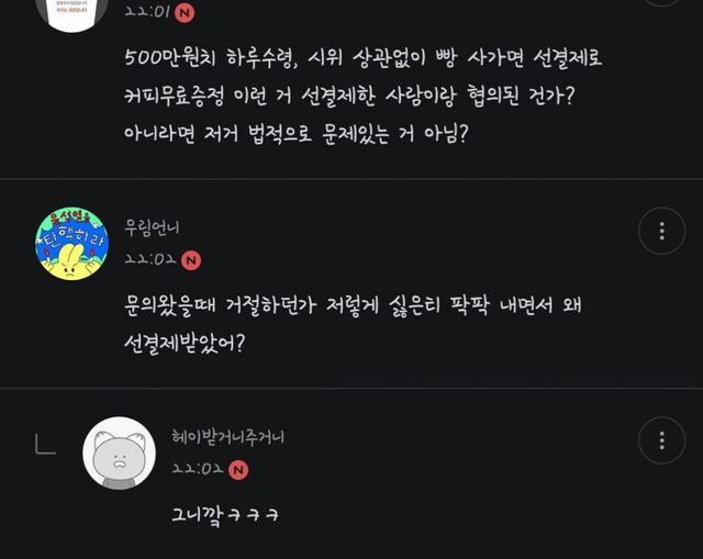 이번 시위때 선결제받았던 자영업자들 이랬던 곳이 많았다고 증언들 나오는 중