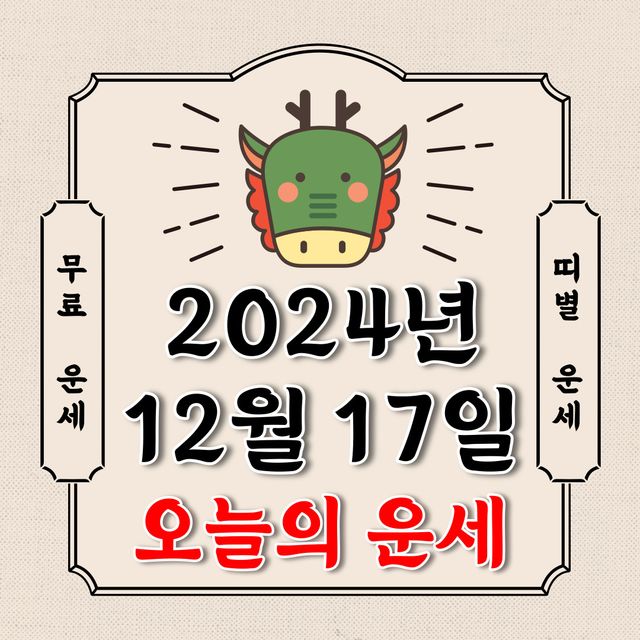 오늘의 운세 2024년 12월 17일 화요일 (음력 11월 17일 / 띠별 운세 / 생년월일 운세)에 대해 알아 보겠습니다.
