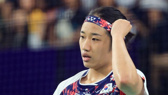 대한민국 배드민턴 대표팀 안세영이 지난 8월 5일 오후(한국 시각) 프랑스 파리 라 샤펠 아레나에서 열린 2024 파리올림픽 배드민턴 여자 단식 결승 중국의 허빙자오 선수와의 경기에서 잠시 생각에 잠겨 있다. / 뉴스1