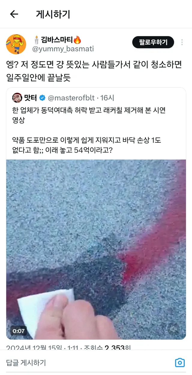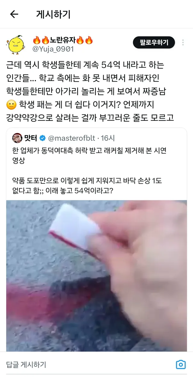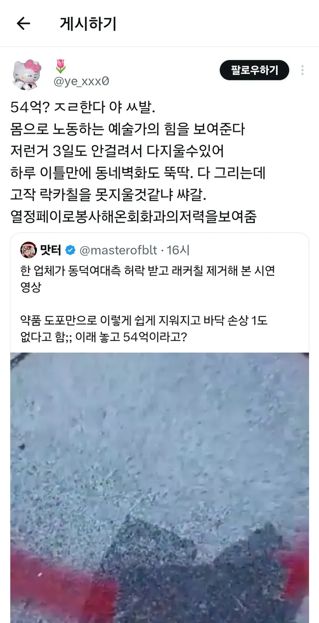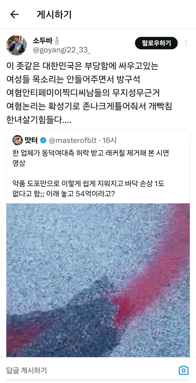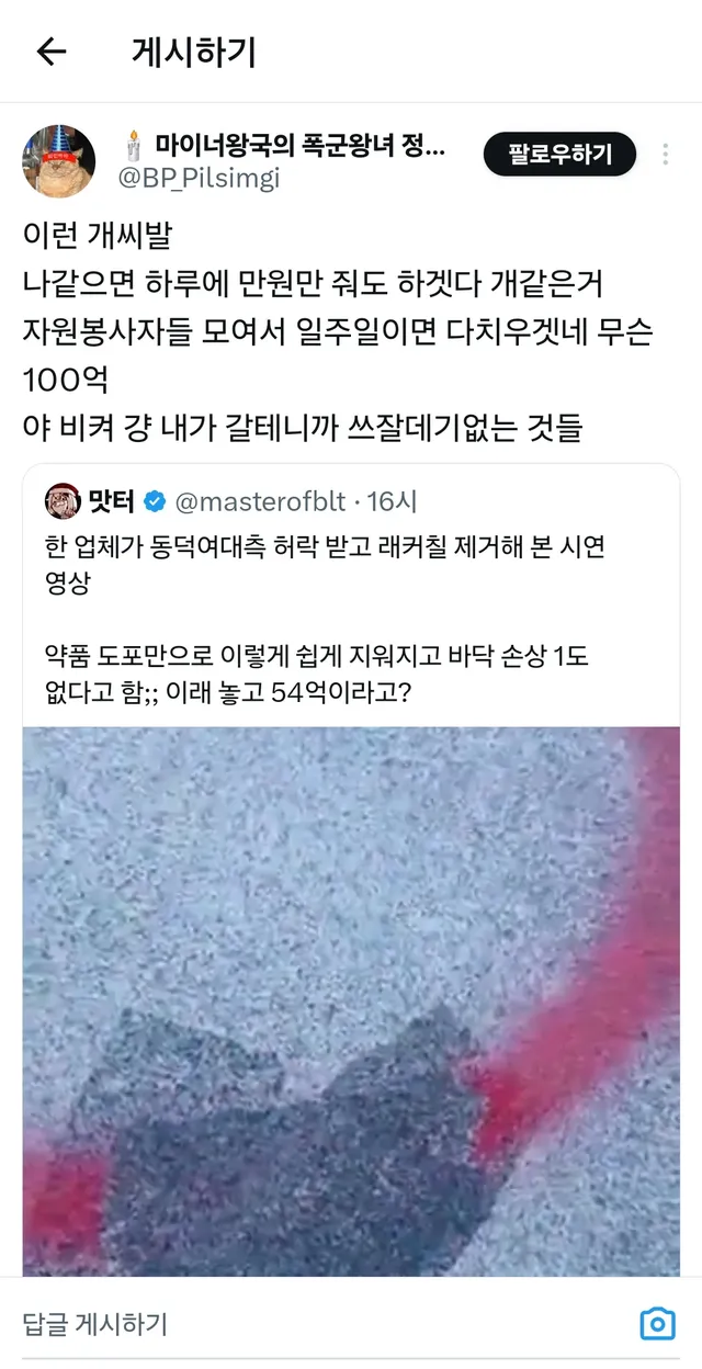 락카 쉽게 지워진다고 불타는 트짹이들