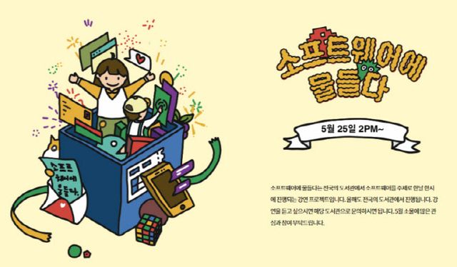 예전에 제가 ‘소프트웨어에물들다(소물)’라는 프로그램에 참가했는데요, ICT하는 사람들이 한 날 한시에 전국 도서관에서 동시에 디지털 리터러시 영향을 못 받고 있었던 아이들에게 소프트웨어 강연을 했습니다. 남해도서관에 가서 했을 때, 오히려 제가 더 많은 것을 깨달은 경험이 있습니다.
