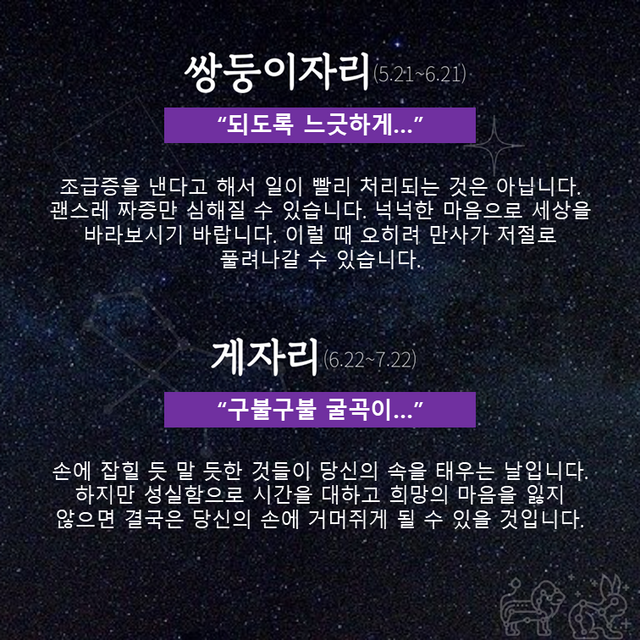 Δ 쌍둥이자리 : 되도록 느긋하게…