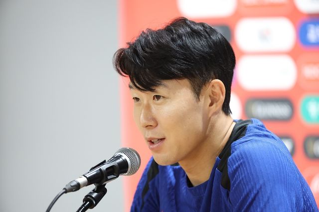 한국 축구 대표팀 주장 손흥민이 지난 6월 10일 오후 경기도 고양종합운동장에서 열린 공식 기자회견에서 경기에 임하는 각오를 밝히고 있다. / 연합뉴스