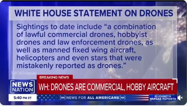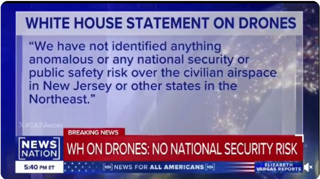 "뉴져지/미동부 민간영공 관련해 비정상적이거나 국가안보 혹은 공공안전에 위협을 줄만한 것들은 확인된 바가 없다"