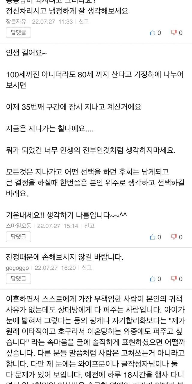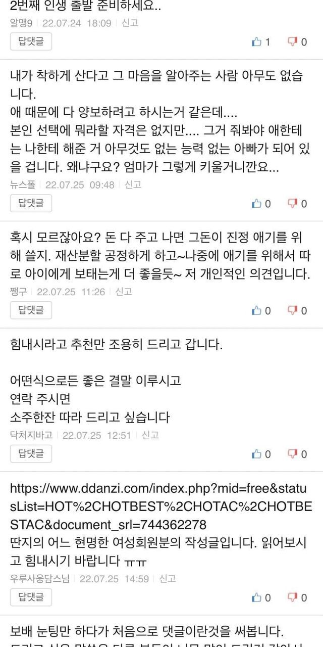 정신차리고 냉정하게 일단 친자 확인부터 하고, 변호사 선임해서 재산분할도 제대로 했으면 좋겠네..