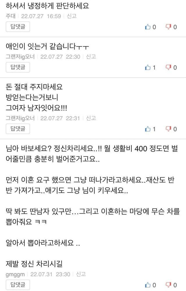 저기 댓글에 적힌 것 처럼 딴 남자가 생긴 것 같은데..
