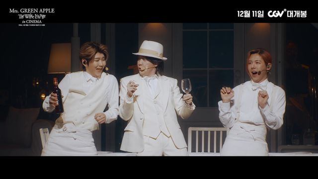 극장으로 첫 내한한 일본 밴드가 있다. 정식 데뷔 10주년을 앞두고, 올해 빌보드 재팬 아티스트100 1위에 오른 ‘대세’ 3인조 밴드 미세스 그린 애플이다. 내년 2월 예정된 첫 내한 콘서트보다도 먼저 한국 팬들에게 자신 있게 선보인 영화는 ‘미세스 그린 애플 // 더 화이트 라운지 인 시네마’다.