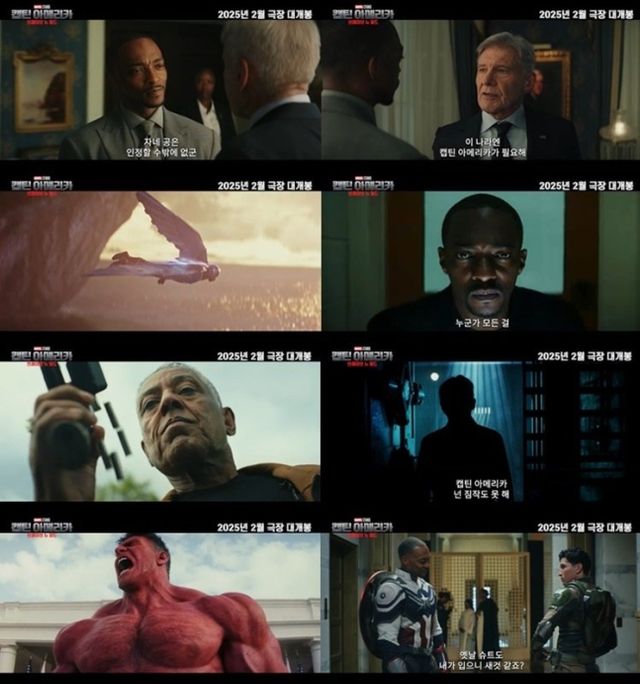 한편 ‘캡틴 아메리카: 브레이브 뉴 월드’는 2025년 마블의 새 페이지를 열 작품이다. ‘캡틴 아메리카: 윈터 솔져’를 시작으로 첫 캡틴 아메리카 스티브 로저스의 든든한 동료이자 팔콘으로 활약해 온 배우 안소니 마키가 새로운 캡틴 아메리카로 분하며, ‘캡틴 아메리카’ 및 ‘어벤져스’ 시리즈에서 많은 사랑을 받았던 작고한 배우 윌리엄 허트에 이어 해리슨 포드가 로스 대통령 역을 맡았다.