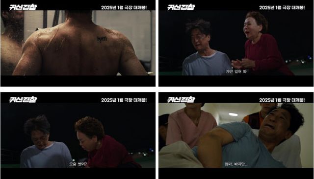 2025년 고민은 웃음만 늦출 뿐인 새해 극장으로 달려갈 첫 번째 패밀리 코미디 ‘귀신경찰/이 신현준의 SNS에서만 143만 뷰와 4만에 가까운 하트 수를 기록한 모션 포스터에 이어 이번에는 티저 예고편으로 관객들을 찾아 나섰다. ’귀신경찰‘의 티저 예고편은 귀염뽀짝 등판 문신의 상남자가 진짜 날벼락을 맞으며 시작한다. 날벼락을 맞고 정신이 반쯤 나간 신현준과 어찌해야 할지 멘탈 나간 김수미의 표정과 대사의 3단 콤보 영상은 웃참 불가 속으로 관객을 초대한다. ‘맨발의 기봉이’, ‘가문의 영광’에 이어 세번째 호흡이자 평소에도 모자 관계로 돈독한 신현준과 김수미의 100% 애드립과 코믹 명품의 모자 연기가 절정으로 달려갈 때쯤 신현준의 간절하고 애처로운 “엄마, 바지만….” 대사는 모두를 현웃 터지게 한다.