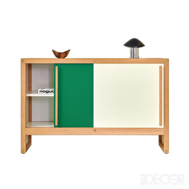 Sideboard, Andre Sornay 비치우드와 초록·아이보리 문으로 이뤄진 사이드보드. 기교를 배제한 형태와 컬러가 매력적이다. 원오디너리맨션에서 구입.