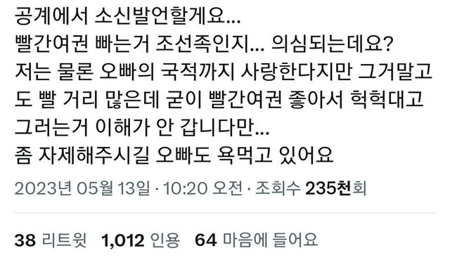 갑자기 트위터에서 한국 실트에 빨간여권이 뜸