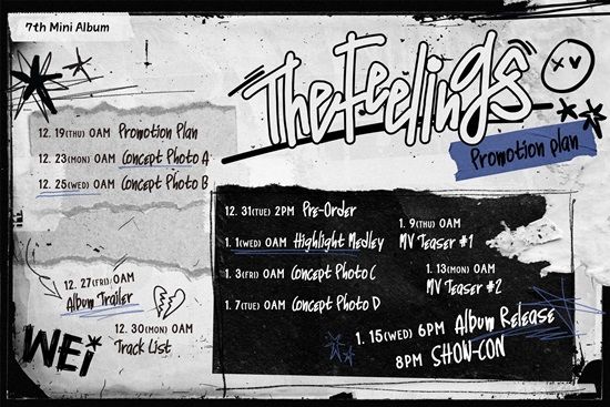 위아이는 19일 공식 SNS를 통해 미니 7집 'The Feelings(더 필링스)'의 프로모션 플랜을 업로드했다.