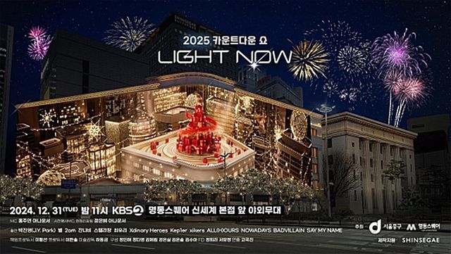 서울 중구는 12월 31일 오후 11시 신세계백화점 본점 앞에서 ‘2025 카운트다운 쇼 라이트 나우(LIGHT NOW)’를 개최한다. K-팝 아티스트 박진영과 잔나비 등 인기 가수가 참여해 축하 공연을 선보일 예정이며, 무대는 서울중앙우체국 광장과 신세계 옆 분수광장 등 두 곳에 마련된다. 특히 신세계백화점 본점의 대형 전광판과 명동 전역의 18개 전광판을 연계해 새해 카운트다운을 동시에 송출하며 몰입감 있는 연출을 선보일 계획이다.