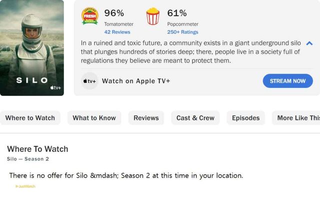 토마토지수 96%, 팝콘지수 61%로 호평을 얻고 있는 애플TV+ '지하창고 사일로의 비밀 시즌2' / 로튼토마토
