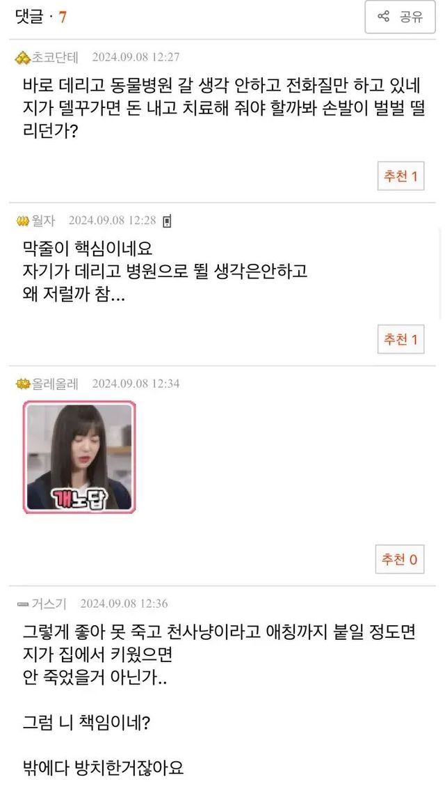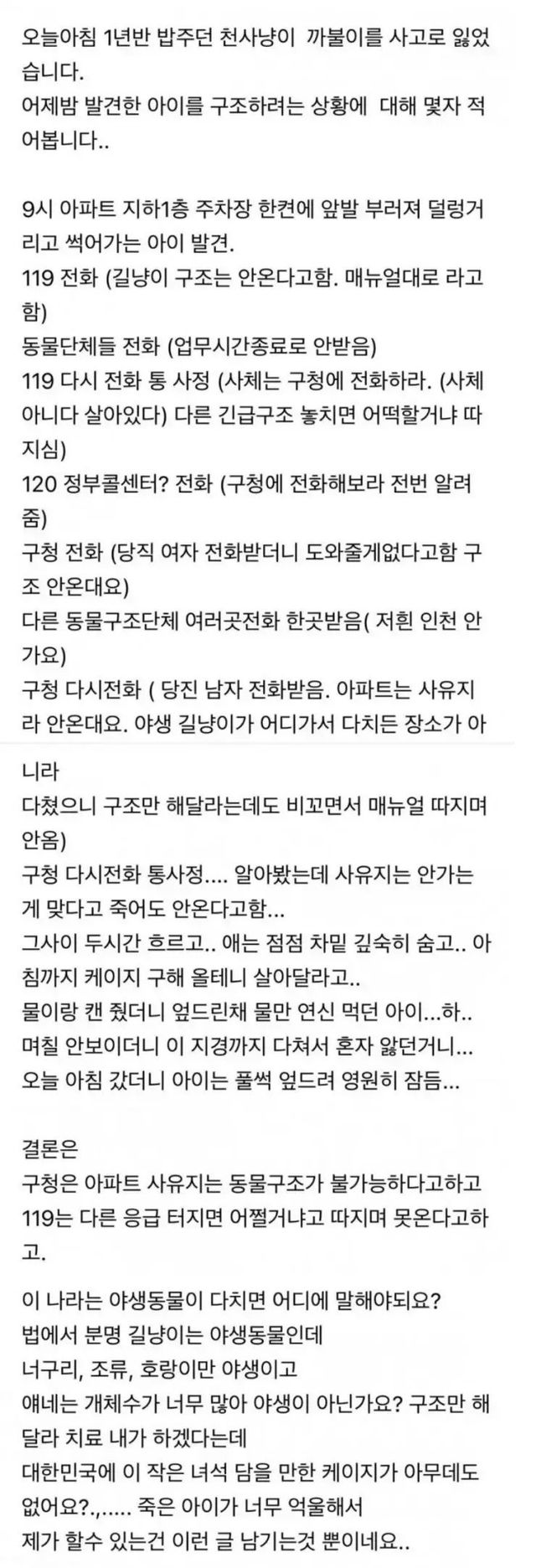 막상 그 길고양이가 부상당하면 나랏돈과 인력으로 치료해달라고 하는건 뭔 심보냐 ㅋㅋㅋㅋ