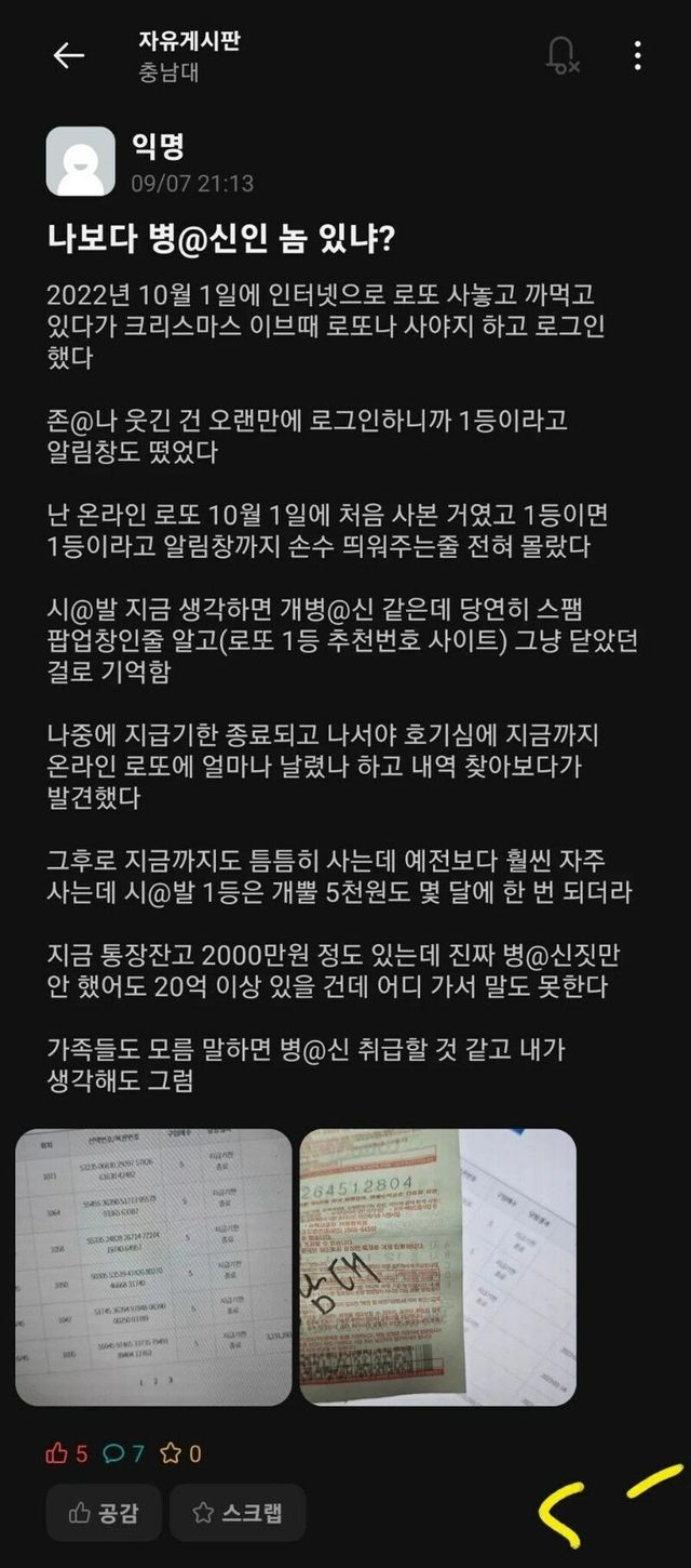 이 글을 보면서 지갑을 싹 디벼서 확인안한 로또를 확인했지만 다 꽝이었다