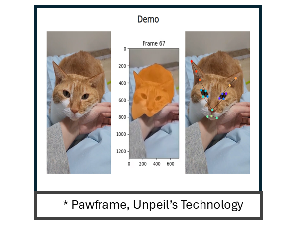 이번 CES에서 언페일은 주력 기술인 'Pawframe'을 처음으로 공개한다. Pawframe은 반려동물 영상에서 주요 프레임을 추출해 AI 학습에 최적화된 데이터셋을 생성하는 독창적인 기술로, 반려동물의 움직임과 표정을 분석하여 비디오 내 주요 객체를 정밀하게 분리하는 것이 특징이다. 반려동물의 표정을 세밀하게 분석한 10만 개 이상의 데이터 기반 라벨링을 적용하여, 생성된 데이터를 데이터베이스에 요약 저장함으로써 AI 모델링 및 메타버스 등에서 다양하게 활용될 수 있다.