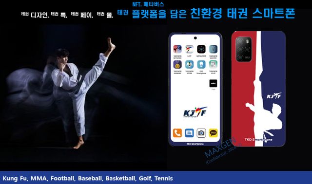 예를 들자면 태권폰,K-컬쳐폰,소상공인폰,,종교폰,E-스포츠폰, 웨딩폰등 나만의 디자인폰 이면서 각 콘텐츠별 플랫폼의 전용앱을 탑재하기 때문에 사람들의 규합과 효율적으로 운영할 수 있는 다기능, 다용도 생활경제 유익폰 이라고 전했다.