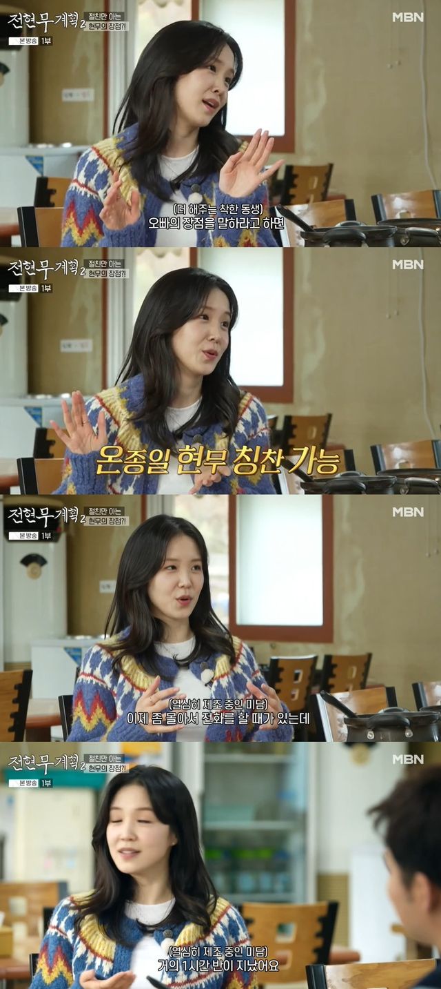 이를 듣던 장예원은 "전현무 씨는 생각보다 고민 상담을 잘해주는 스타일이다"며 "오빠의 장점을 말하라고 하면 온종일 말할 수 있다"며 전현무의 미담을 풀어냈다.