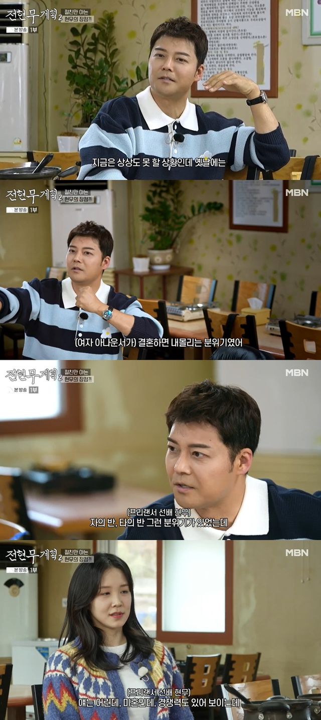 이에 전현무는 "지금은 상상도 못 할 상황인데 옛날에는 (여자 아나운서들이) 결혼을 하면 내몰리는 분위기가 있었다. 요즘은 상상도 못 할 분위기인데 (당시에는) 자의 반, 타의 반 그런 분위기가 있었다"고 이야기했다.