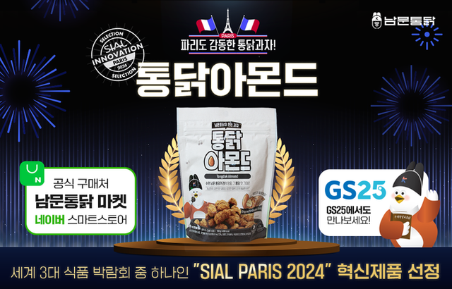 남문이터테인먼트의 치킨 프렌차이즈 브랜드 남문통닭은 세계 3대 식품 박람회 중 하나인 ‘SIAL Paris 2024’에서 혁신제품으로 선정된 신제품 ‘통닭과자(아몬드, 캐슈넛)’를 오는 24일 온라인에서 정식 출시한다고 밝혔다.