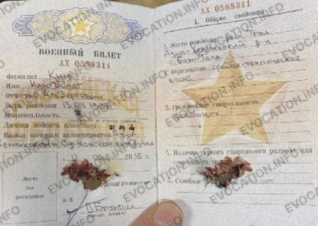 신분증에는 소지자가 1997년 4월 13일에 태어난 투바공화국 출신의 ‘킴 칸볼라트 알베르토비치’란 정보가 담겼다. 킴은 바이안탈라 마을에서 태어난 병사가 2016년 중등 기술 교육을 받고 지붕 공사 일을 하다가 투바 제55 산악보병여단에 징집된 것으로 기록됐다.