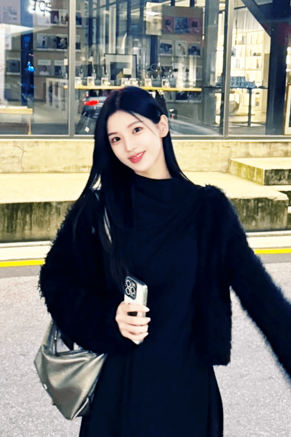 공개된 사진 속 강다은은 올블랙 의상으로 시크하면서도 세련된 나들이 패션을 완벽하게 소화했다.