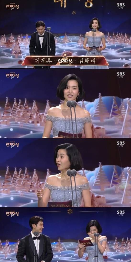 이제훈은 김태리에게 "2024년 SBS 드라마가 작년에 이어서 올해 특히나 시청자 여러분들의 뜨거운 사랑을 받았지 않았냐"고 이야기했다.