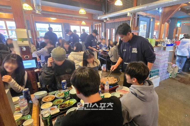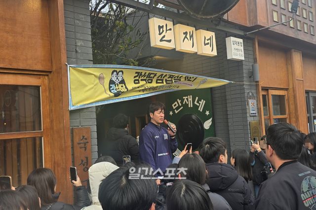 삼성 라이온즈 포수 강민호(39)의 우렁찬 한 마디에 나머지 28명의 선수들이 일사불란하게 움직였다. 입구에서 강민호가 팬들에게 동선을 안내하는 한편, 선수들은 각자 자기가 맡은 테이블에 팬들을 안내해 고기를 구울 준비를 마쳤다. "(이)성규야, 4인 준비!", "(김)윤수야, 방에 몇 명 들어갈 수 있어?" 총 4회차 중 한 회 당 150명이 한꺼번에 들어오는 정신 없는 와중에도 '주인장' 강민호는 정신을 바짝 차리고 선수들을 리드하며 팬들을 안내했다.