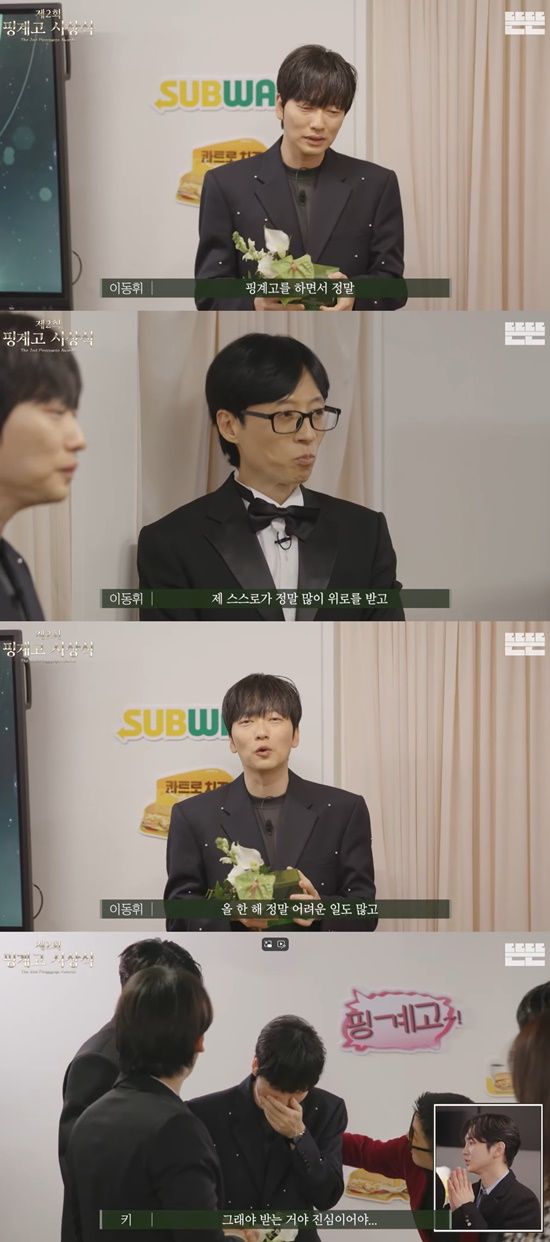 이어 이동욱과 공유, 조세호는 팀으로 작품상을 받았다. 이동욱은 지난해에 이어 올해까지 핑계고 시상식에서 수상을 해 눈길을 끌었다.