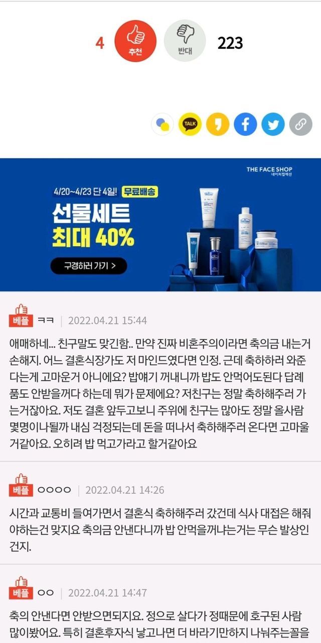 을 전제로 축의금 안내도된다 vs 그래도 내야한다