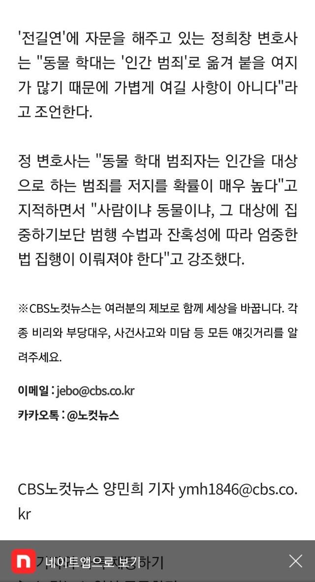 A씨는 “보통 학대범들에게는 ‘심하게 물려서’ ‘시끄러워서’ 등의 폭력이나 살해 목적이 있기 마련인데 그에게는 특별한 이유도, 분노나 좌절 등 감정의 변화가 전혀 없었다”고 전했다.
