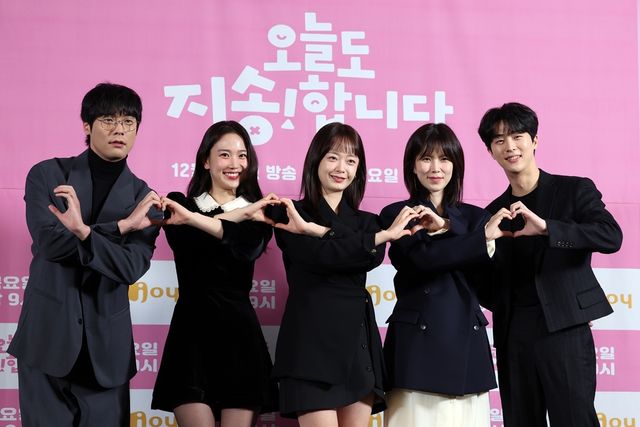 배우 최다니엘(왼쪽부터), 장희령, 전소민, 공민정, 김무준이 KBS Joy 새 드라마 '오늘도 지송합니다' 제작발표회에서 포즈를 취하고 있다. / 뉴스1