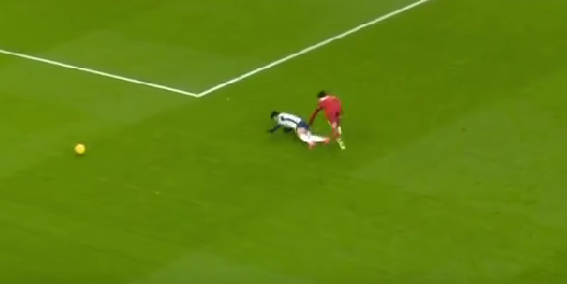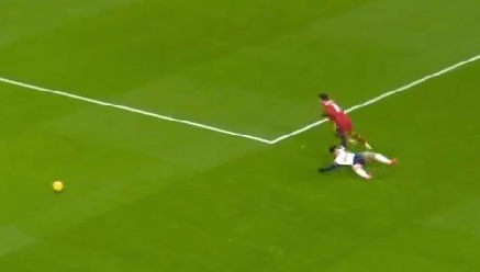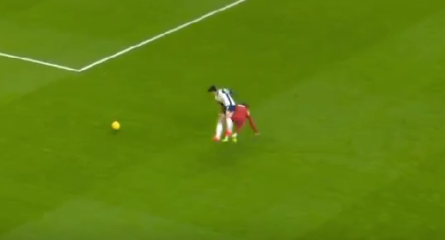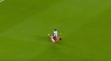 손흥민은 후방에서 길게 넘어온 공을 절묘한 침투 타이밍을 이용해 잘 잡아놨다. 그러나 손흥민을 따라온 리버풀 미드필더 소보슬러이가 몸을 던지는 태클을 시도했고 손흥민이 버텨내면서 공이 앞으로 빠졌다. 중심을 잡은 손흥민이 공을 쫓으러 소보슬러이를 지나치려는 순간, 소보슬러이가 팔을 써서 제지했다. 이로 인해 걸려 넘어진 손흥민은 주심에게 반칙을 어필했으나 주심이 그대로 경기를 진행시키자 억울함에 땅을 세게 쳤다.