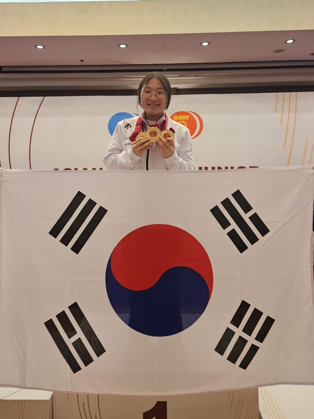 중학 역도 기대주 이다연(15·마산삼진중)이 2024 아시아주니어·유소년역도선수권대회에서 3관왕에 올랐다.