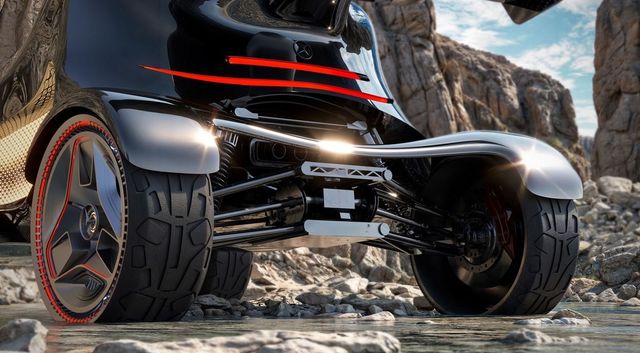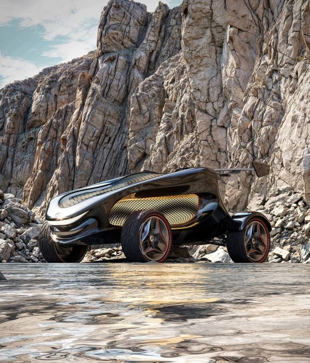 이 콘셉트카는 독특한 스타일링으로 다른 세계를 탐험할 준비가 된 것 같은 느낌을 준다. 차량 전후면에 부착된 메르세데스 로고를 제외하면, 메르세데스 특유의 디자인 요소는 찾아보기 힘들다. 뾰족한 앞부분, 독특한 루프라인, 맞춤형 측면 패널, 거대한 리어 윙, 그리고 복잡한 조명 디자인이 차량을 돋보이게 한다.